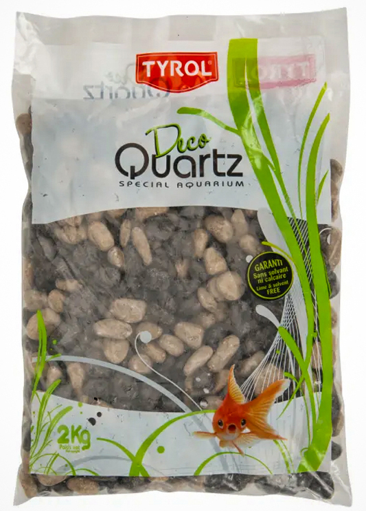 Pebbles Polished Taupe 2KG Tyrolean quartz deco varnished gravel with the mix of chocolate taupe colours will give your aquarium decoration a nice warm tone. These gravels are guaranteed to be limescale-free and solvent-free, and suitable for both fresh and saltwater. Particle size: 10-25 mm
