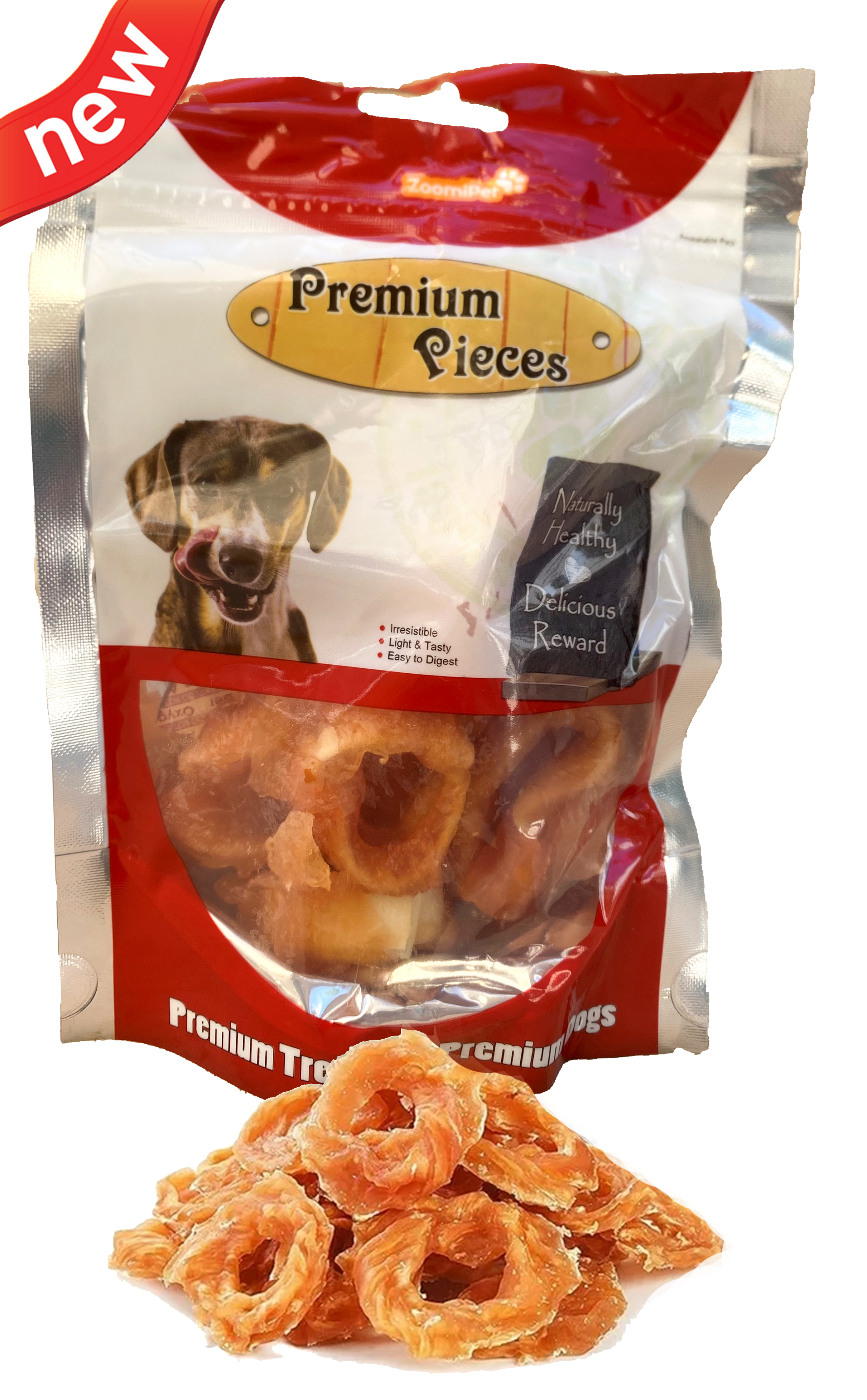 Cod & Chicken Rings 100g Succulent chicken and fish combined into an irresistible treat that dogs love. The texture, shape and flavour make this treat the superior choice. When you need a quick, healthy snack or delicious reward these practical and pocket-sized treats are the right choice to keep your dog satisfied. 100g Pack. Ref Code: ZP75301 EUR3.15